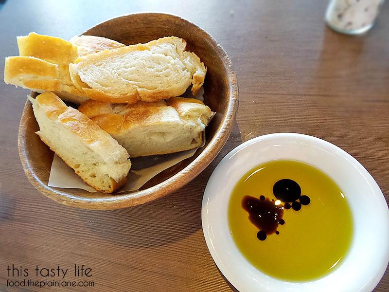 We blissfully sat in the corner in the A/C restaurant and were happily given some complimentary crusty bread with olive oil and a teeny amount of balsamic. The bread was still hot and had a wonderful crispy crust. I had to remind myself to not keep eating the bread! The olive oil was also really nice – it had a nice bold flavor to it that complimented the bread very nicely.