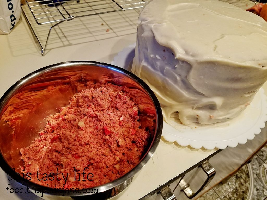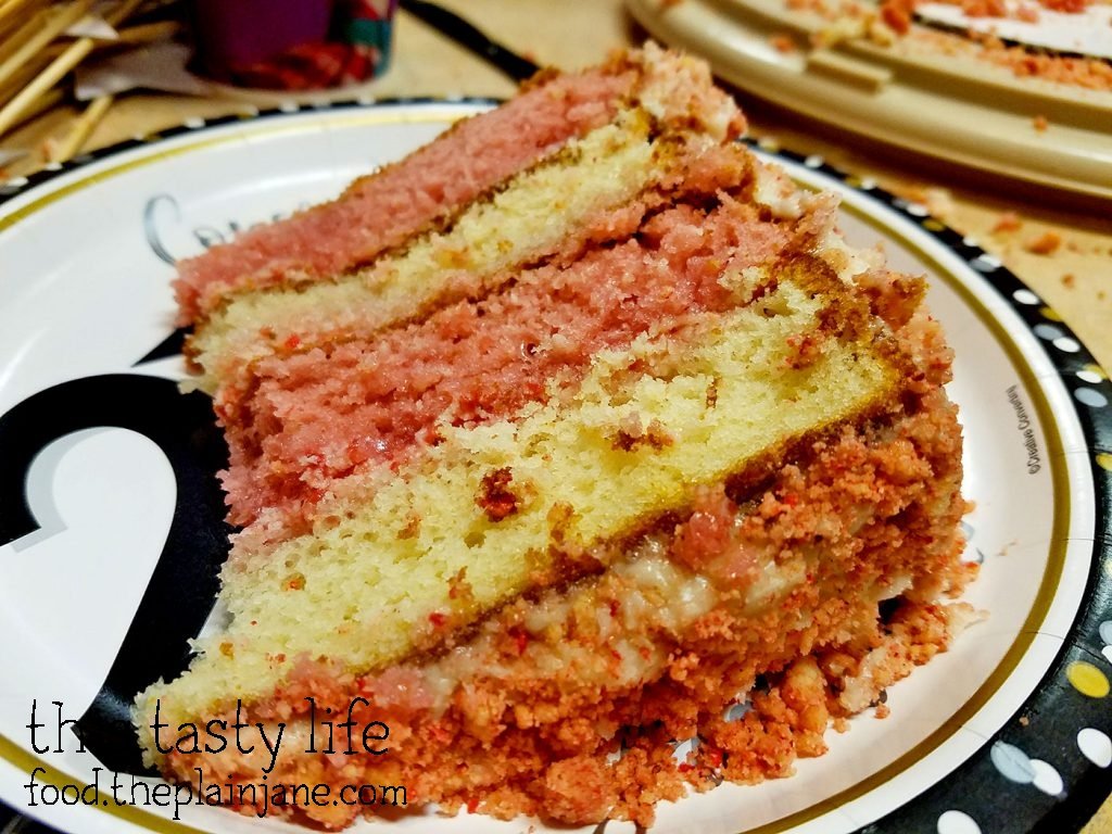 I decided to do a Strawberry Crunch Cake based off those Strawberry Crunch Ice Cream Bars. I used the recipe from Confessions of a Cookbook Queen.