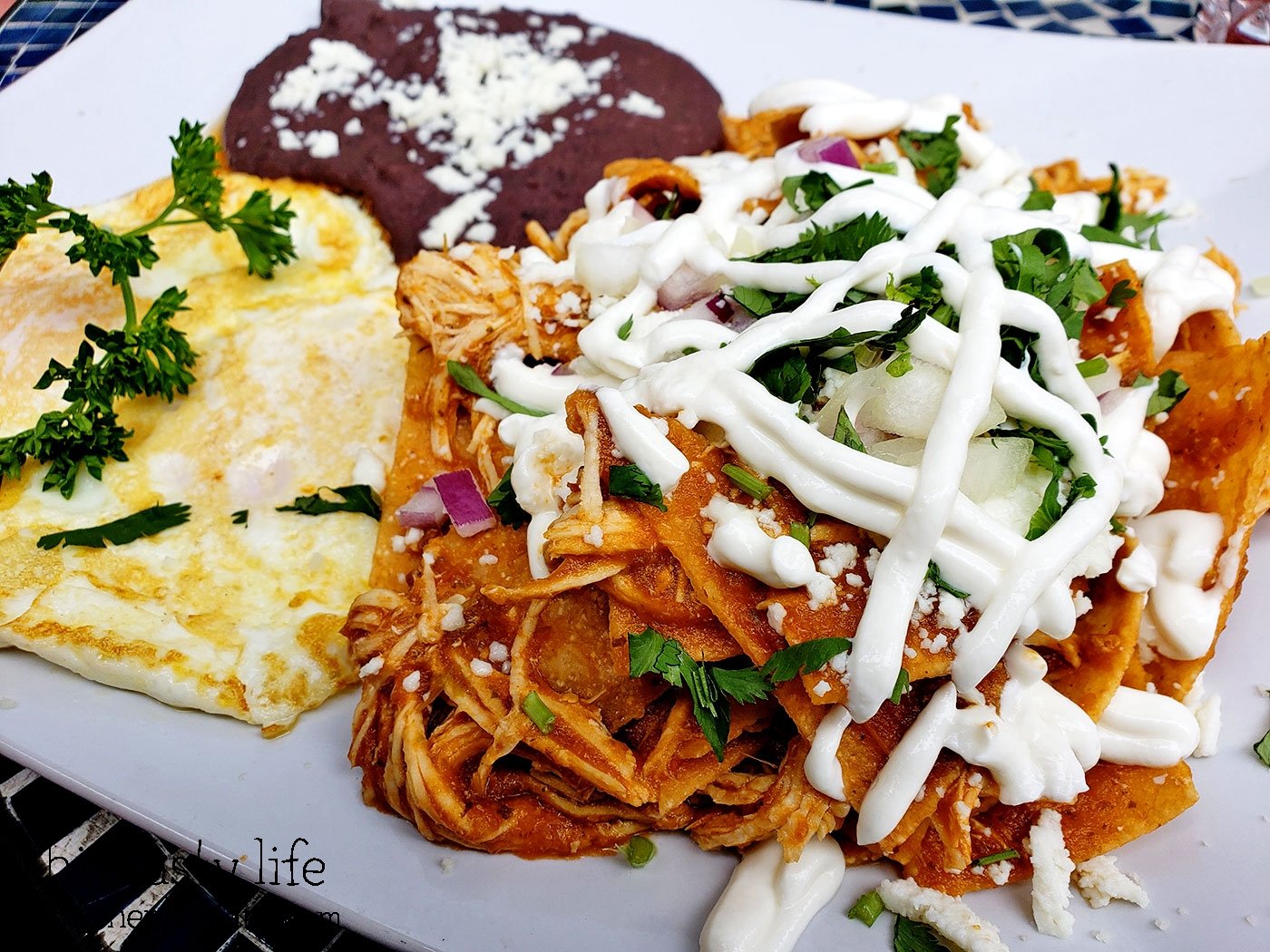 Another dish chosen by Jake… the Chilaquiles with Roja sauce [$13.95]. You have the option of Roja or Verde sauce and Jake picked Roja. The sauce on this plate of chilaquiles was really lovely. I liked that the corn chips retained a bit of their crunchy texture despite being drenched in sauce and sour cream.