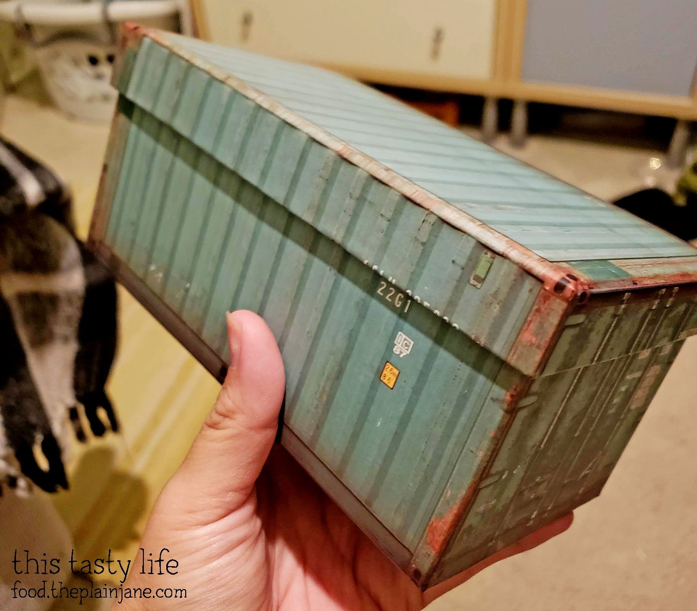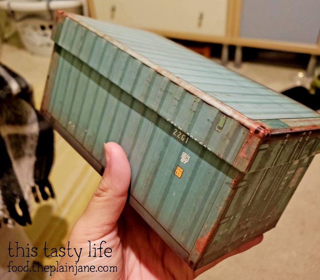 For the boxes that held the donuts, I picked up these boxes at Daiso. They look like mini shipping crates!
