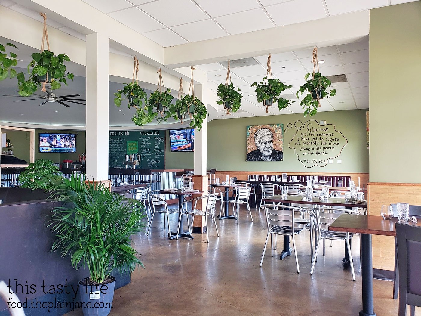 Last week my friend CC of Pink Candles at Ridgemont High came up my way to join me for lunch. Hooray! We decided to visit the new Gaya Gaya Bar & Kitchen, which was previously Sarap. And BEFORE Sarap, it was a South African restaurant called Capetown. It’s gone through a few changes and now Chef DJ Tangalin has taken over the menu and changed the name as well as given the restaurant a little bit of an upgrade.